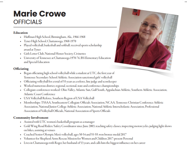 Click here to watch Marie's inductdion video
